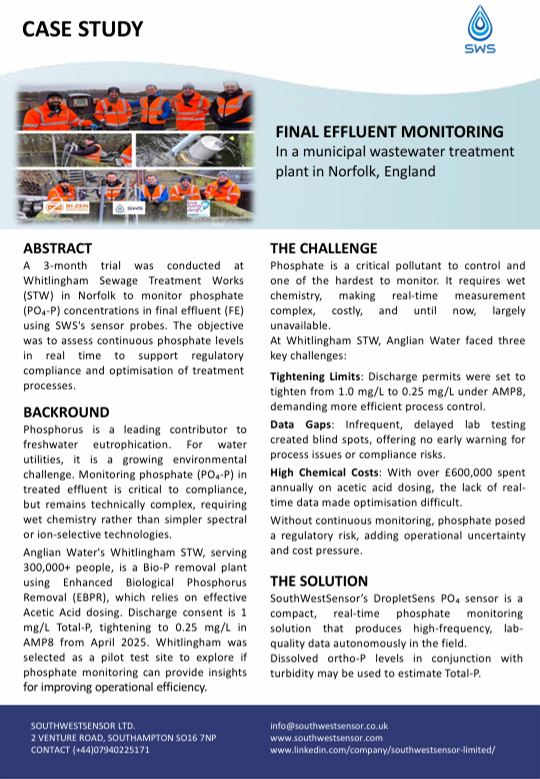 SouthWestSensor Ltd launching new phosphate monitoring probes